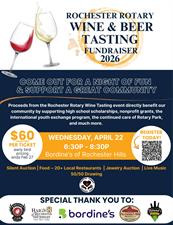 Proceeds from the Rochester Beer & Wine Tasting event directly benefit our community by supporting high school scholarships, non-profit grants, the Rotary International Youth Exchange Program, and the continued care of Rotary Park, and much more. Bring a Friend, A Neighbor, And Your Cousin!